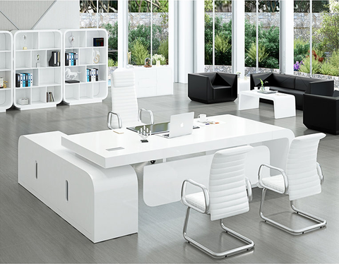 Boss room-barniz blanco para escritorio de oficina, mesa de lujo para recepción, venta al por mayor
