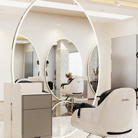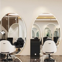 Мебель для парикмахерской, профессиональное овальное одностороннее черное зеркало для парикмахерской со светодиодной подсветкой